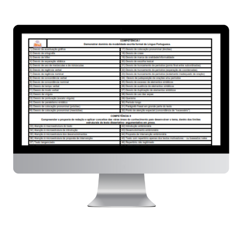 Com essa grade em mãos, você não apenas agiliza o processo de correção, mas também oferece um feedback consistente e confiável para seus alunos. São mais de 100 itens que são despontuados pela Redação Enem, separados e enquadrados em suas respectivas competências, tudo baseado nos Manuais Oficiais de Correção do Inep.