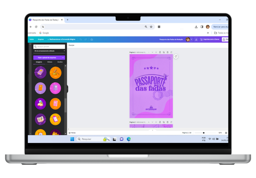 Para colecionar de forma digital, basta clicar no botão abaixo e fazer uma cópia do template do Passaporte das Fadas no Canva. Após isso, é só fazer o upload do arquivo do selo no Canva e posicioná-lo no lugar correto do passaporte.