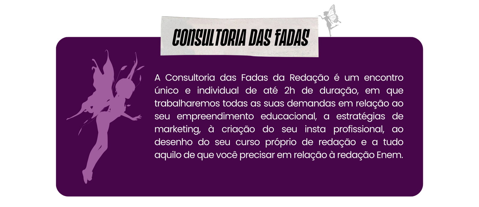 Você receberá um voucher de 20% para usar em qualquer produto da faixa Fada Alada (Planner de Redação Vol. 1, Vol. 2, Vol. 3 ou Mapa dos Repertórios)